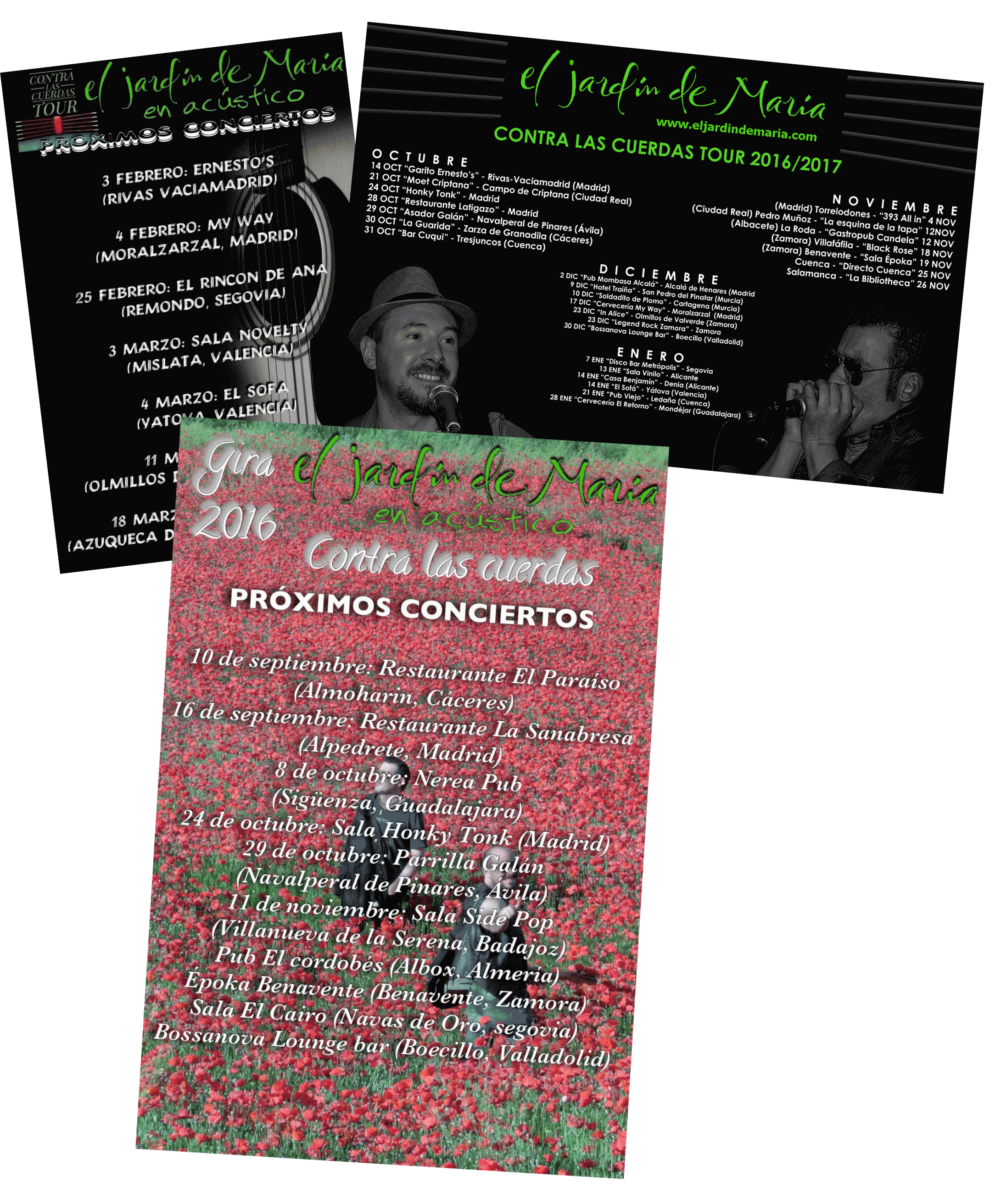| L 17 de abril 2019 | Sala Clamores (Homenaje a Bob Dylan junto a Geny Galo y Ángel de Venancio) | Madrid | ||